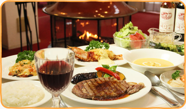 パチパチという薪が燃える音色は、心を癒してくれる太古から続くメロディー。時を忘れてゆっくりと、美味しい料理をご堪能ください。